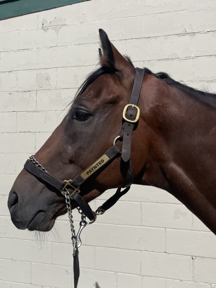 While Paynted is a light cribber, his habit is fully under control with a strap, which his owner will provide. Importantly, he doesn’t crib when he’s turned out, and many horses tend to leave such habits behind when leaving the racing scene. Additionally, he has old and well-set osselets that won’t impact his future pursuits. He’s an easy keeper and has enjoyed time with other horses during breaks from racing. He is believed sound for any career.