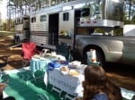 We arrived at Dawson Forest expecting to see a few other trail riders who wanted to enjoy the glorious Fall weather – what we did not expect was a packed parking lots filled with horse trailers, horses on picket lines and in temporary corrals along with a huge tent and the wonderful smell of BBQ. The Georgia Equine Rescue League (GERL) was having a fund raiser and boy were there a lot of horses and people!
