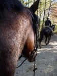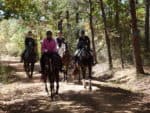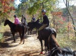 Saturday was the perfect Fall day for taking a trail ride to the North Georgia Mountains. Dawson Forest is not that far from our farm and there are over 5000 acres of wooded trails to ride on. We loaded up three Thoroughbreds – one who had never been trail riding, and met up with two more Thoroughbreds owned by friends who purchased their off-the-track Thoroughbreds from Bits & Bytes Farm.