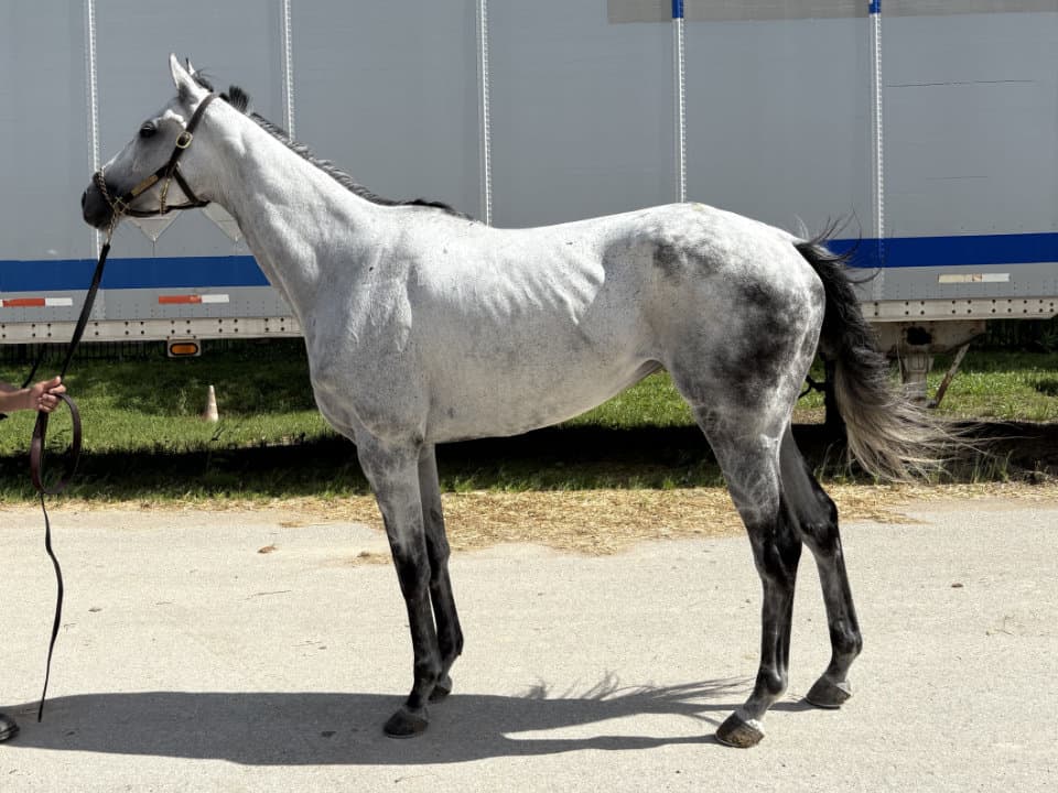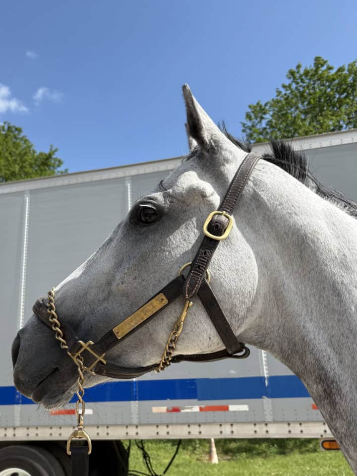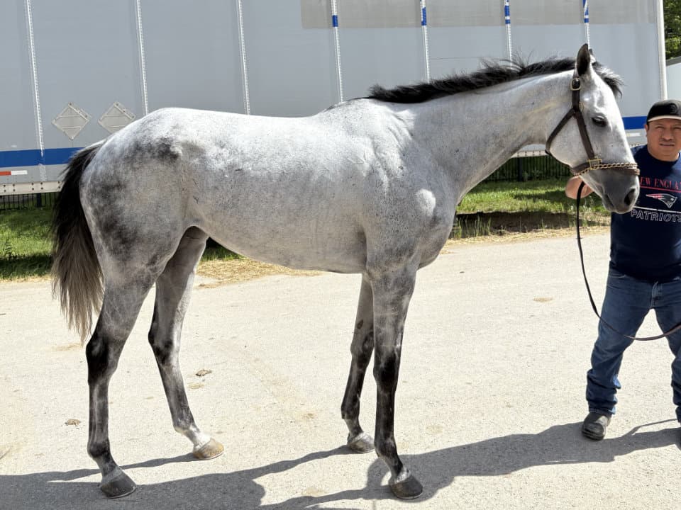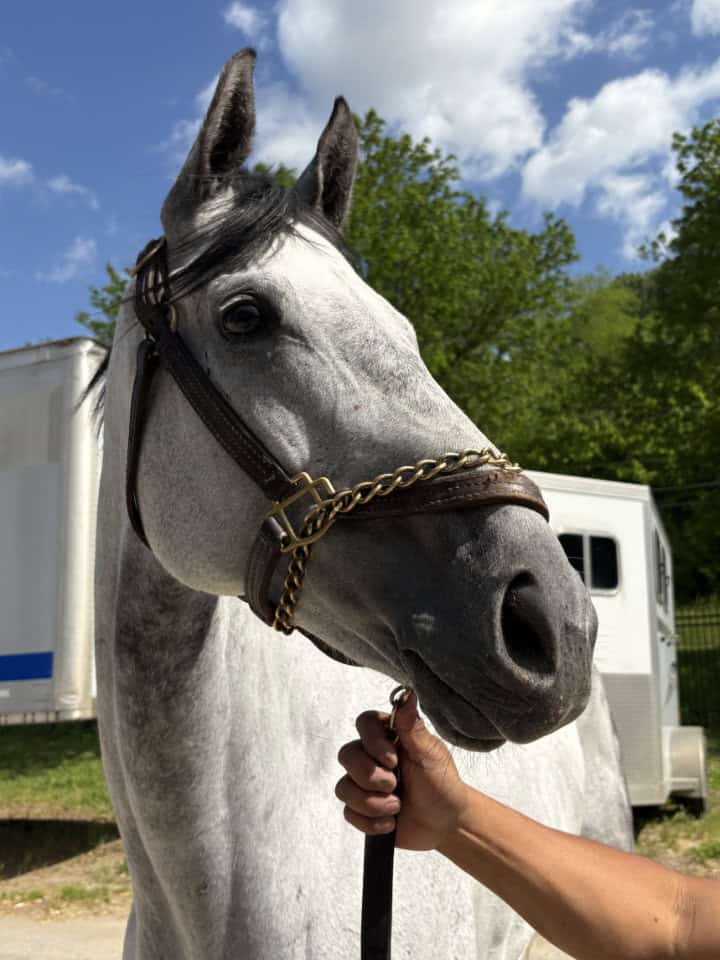 Oh, where do we start with Second Exchange, or as we lovingly call her, Big Mama? This 2017, 16.1 hh gray Thoroughbred mare is the kind of horse that makes you smile just by being near her. Since she came to her trainer’s barn in February, she’s been stealing hearts left and right with her gentle soul and infectious charm. Ready to meet the mare who’s as sweet as a peppermint?