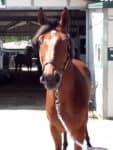 Tillo is a 16 hand 2008 bay Thoroughbred gelding for sale from his breeder. He has raced only five times and he won one race. Now he has to race against other horses who have won races and he is not competitive. Tillo has a wonderful temperament and everyone loves him. He is believed sound for any career and he has no bad habits. Tillo loves kids and he will do stretches for treats. He has been handled at the track by a young child and he loves to be brushed. He doesn’t have a mean bone in his body and he even knows a few tricks. Tillo has great feet. His breeder would like him to go to a good home with someone who will keep her updated as to his progress as a sport horse. Tillo could be your next hunter/jumper or event horse. SOLD!