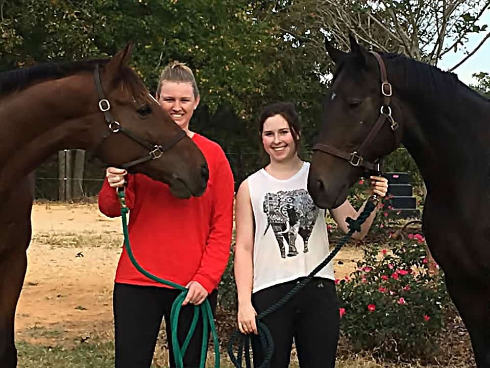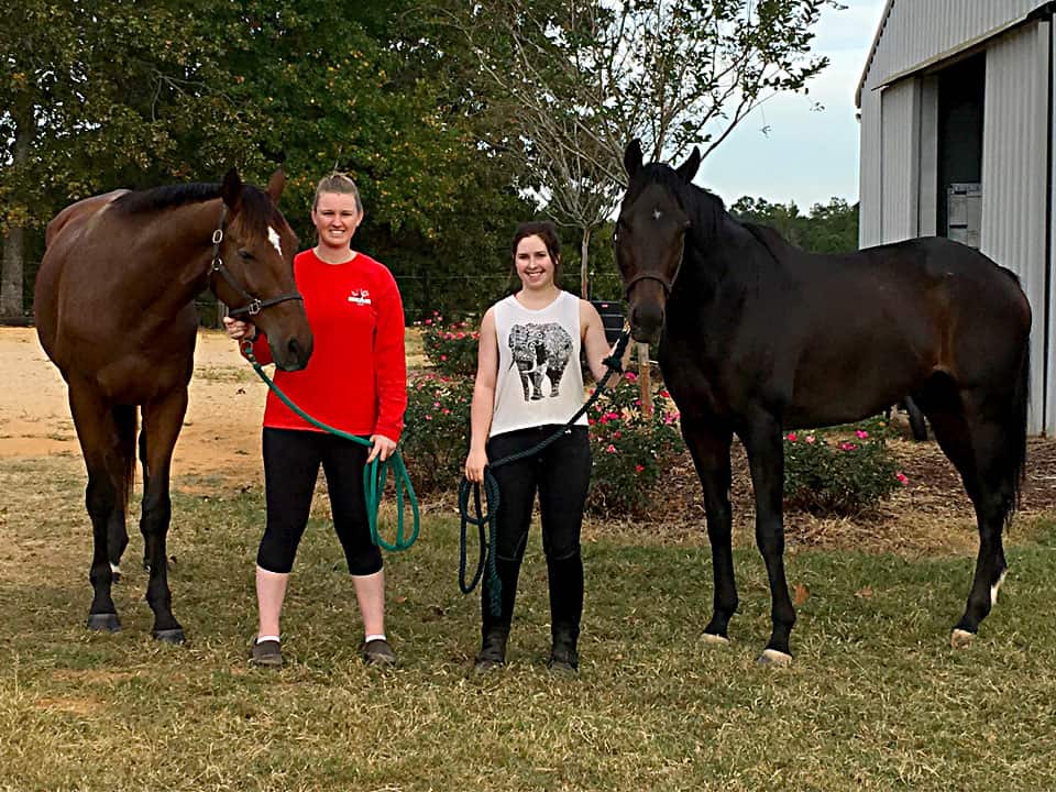 Angela Lenning and Alphanumeric (L) with Ali Kontos and Do I Do (R). The ladies board at the same farm in Tuscaloosa, AL.