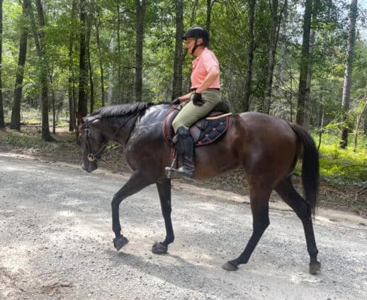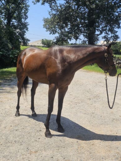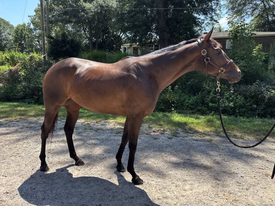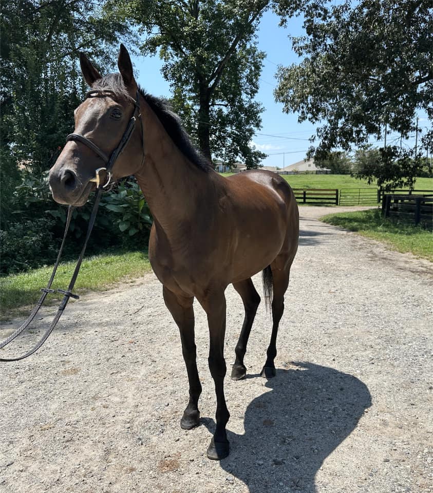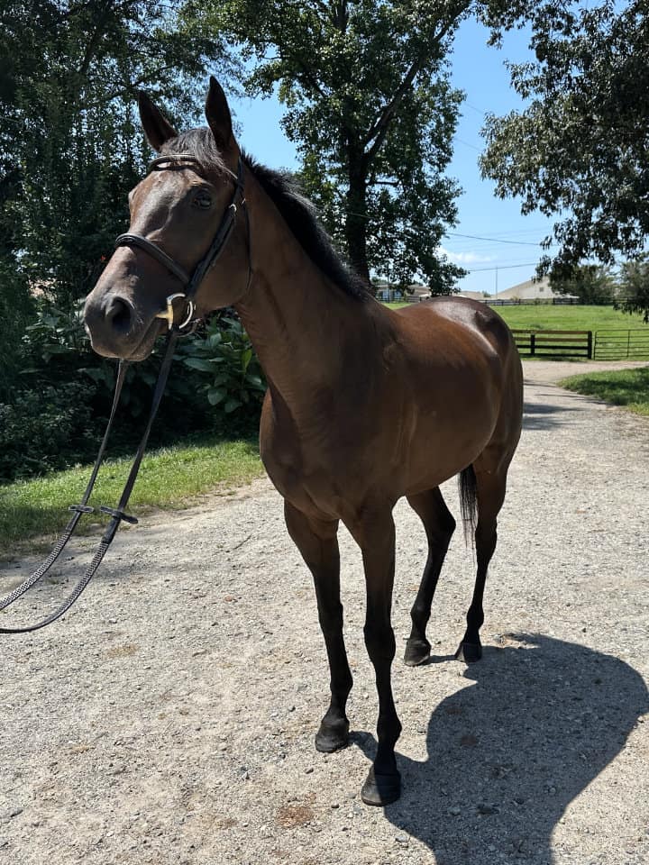 Bred for the racetrack, Gracie competed in four races with a commendable third-place finish. Like her sister, This Masquerade, whom we successfully placed, Gracie’s true calling lies beyond the track. At Bits & Bytes Farm, she’s been given a world-class foundation to shine as a sport horse. Her training is nothing short of exceptional—she’s attended dressage clinics, trained for a month with Lauren New, participated in a Tik Maynard clinic, enjoyed overnight camping, mastered free jumping, and started over x-rails. Gracie doesn’t just perform; she excels in every discipline she touches.