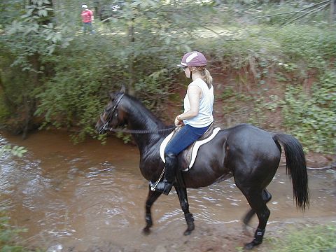 DD is quiet on the trails even with other horses. He jumps logs and natural obstacles without hesitation. |
